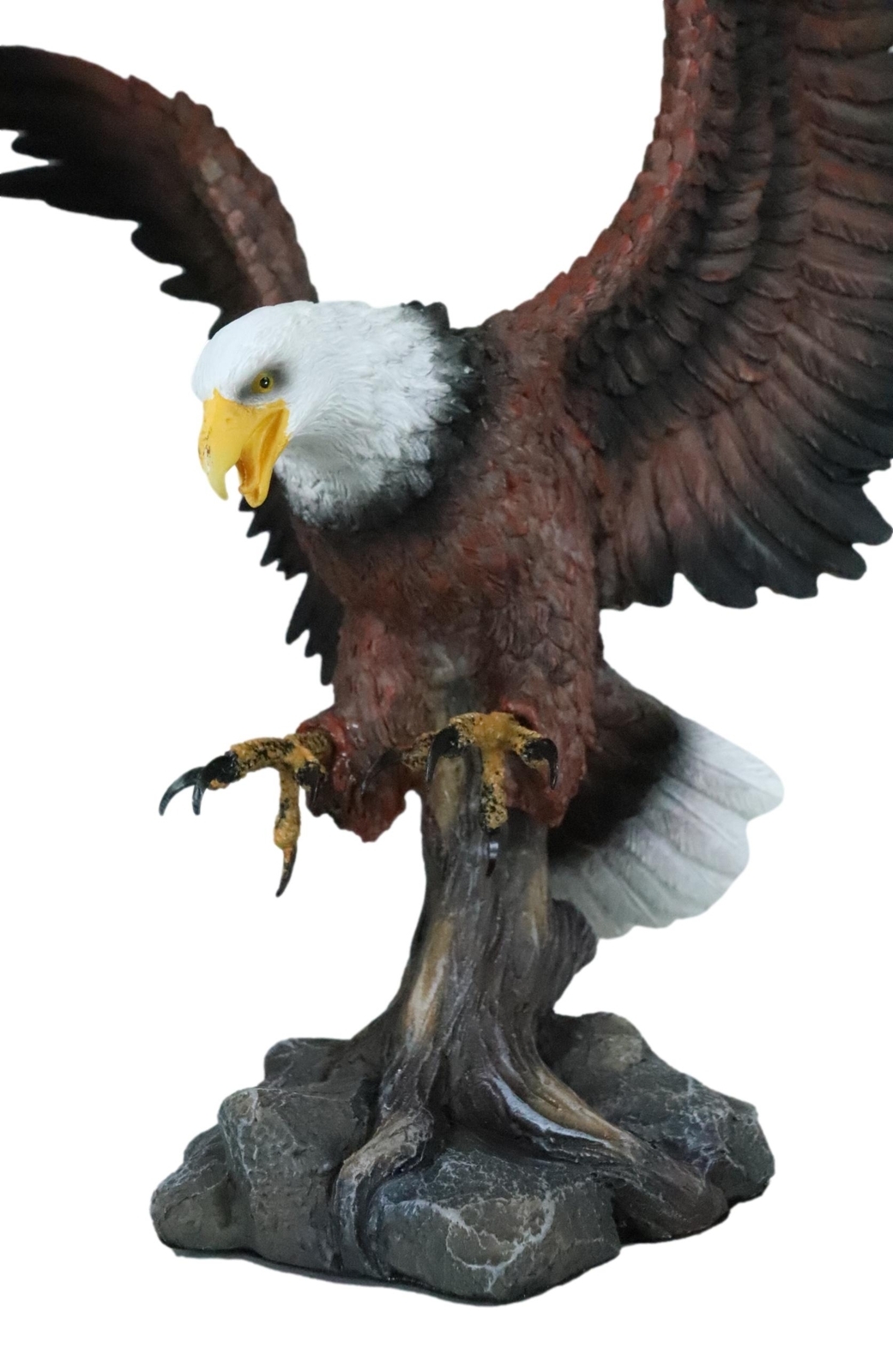 ? This Large Majestic Swooping Eagle Statue is made of designer composite polystone resin, hand painted and polished. Polystone which is composed of polyurethane, resin, and mixed with powdered stone additives that give it added weight and a porcelain or "stone-like" feel. Polystone is very durable and delivers a cleaner, more substantial representation of an original sculpture than other common materials.