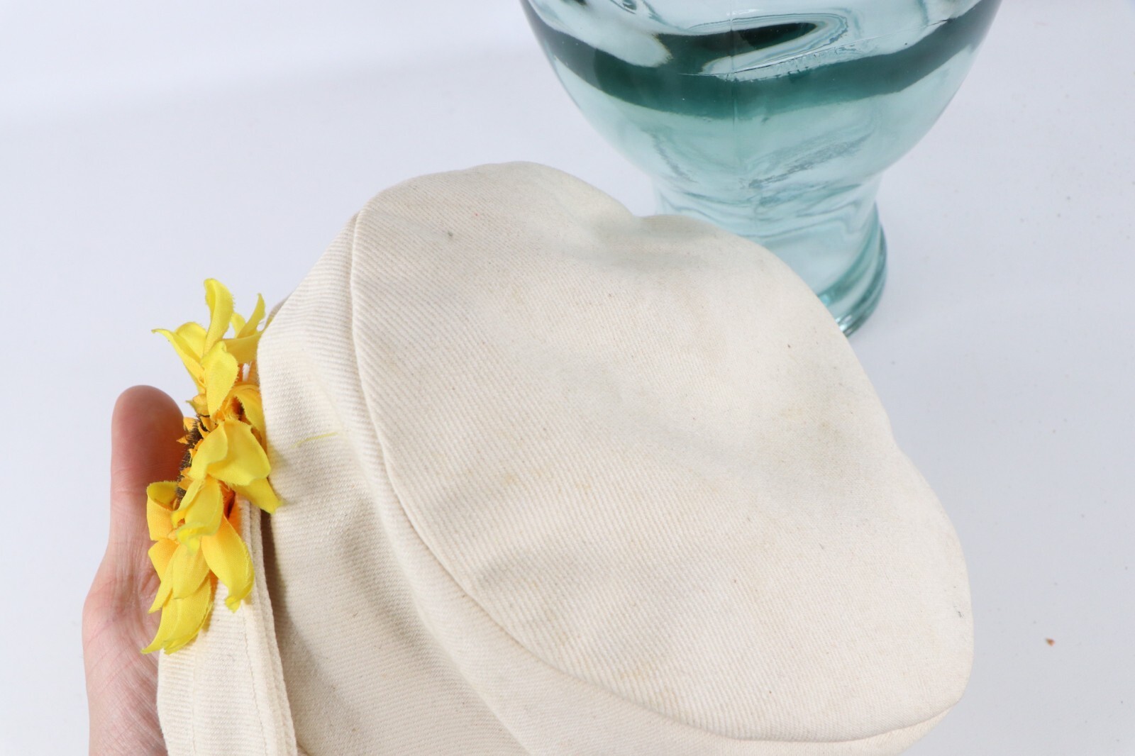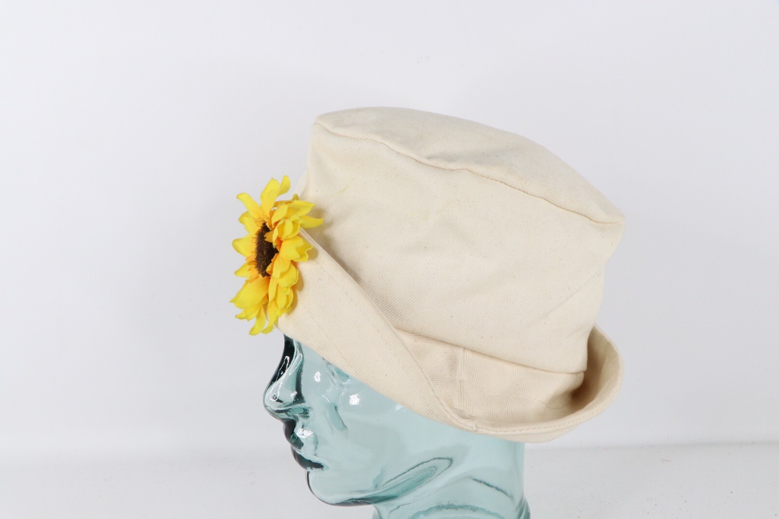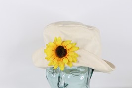 Vintage 90s Streetwear Sunflower Canvas Bucket Hat Cap Cream Cotton Womens M/L