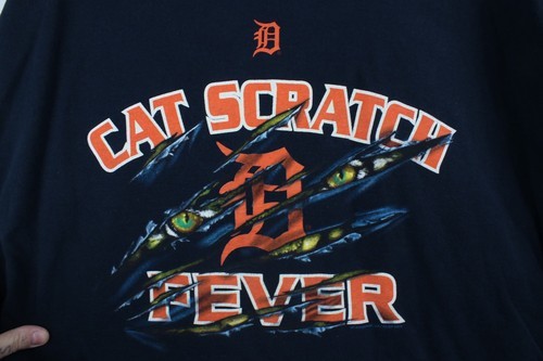 Vtg Y2K Mens 2XL Old English D Cat Scratch Fever Detroit Tigers Baseball T-Shirt