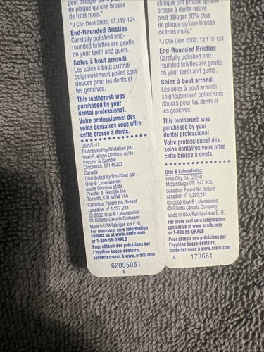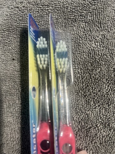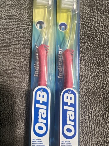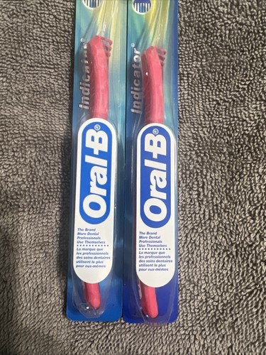 (2) VTG Oral-B Indicator Soft Bristle Toothbrush Blue Clear from 2002 NOS, Dentist. Pink handles with personalized dentist info on the handle. See pictures for details