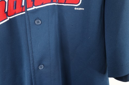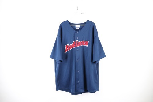 Vintage 90s Mens Size XL Cleveland Indians Spell Out Baseball Jersey Navy Blue