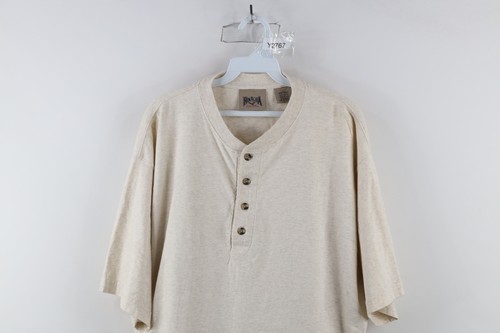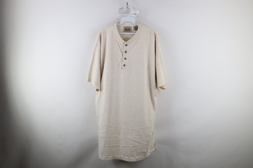 Vintage 90s Streetwear Mens XLT Blank Short Sleeve Henley T-Shirt Heather Beige