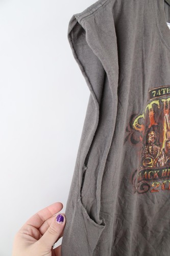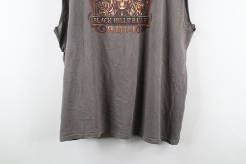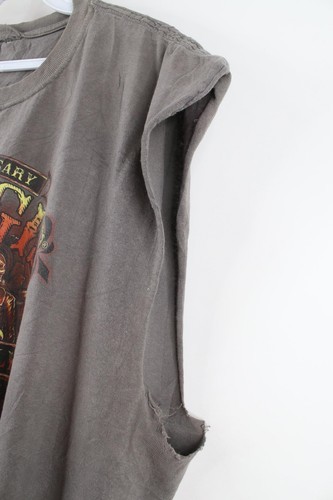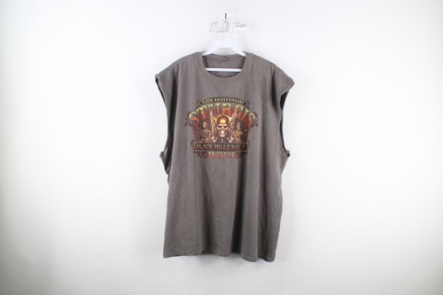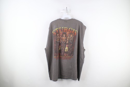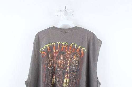 Y2K 2014 Mens 2XL Thrashed Sturgis Rally Skeleton Flames Sleeveless T-Shirt Gray