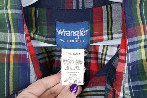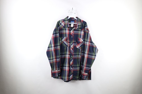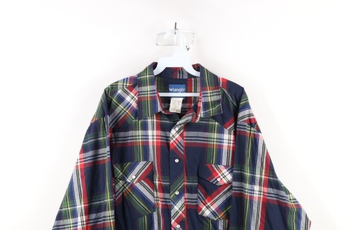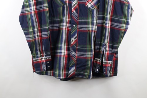 Vintage 90s Wrangler Mens 2XL Faded Western Rodeo Button Shirt Rainbow Plaid