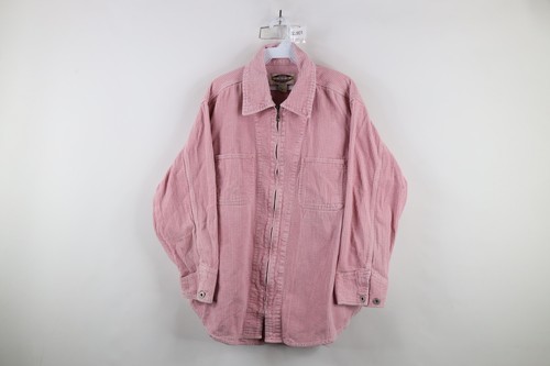 Vintage 90s Streetwear Womens 22W Distressed Corduroy Full Zip Shirt Jacket Pink