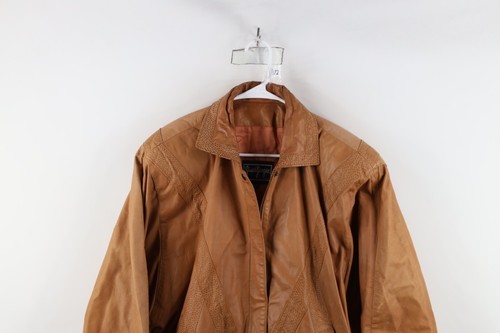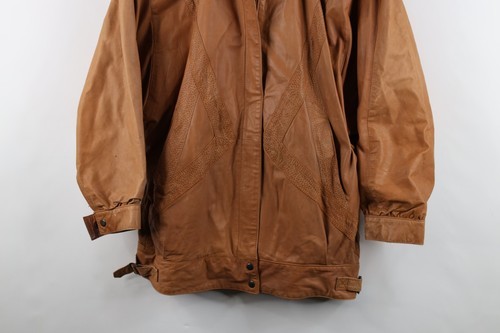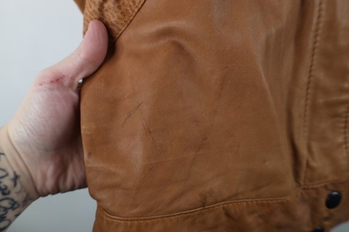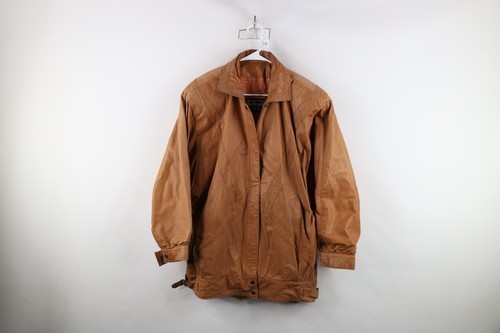 Vtg 80s 90s Streetwear Womens Large Distressed Side Buckle Leather Jacket Brown