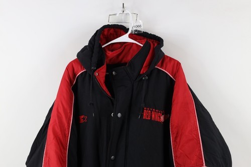 Vtg 90s Starter Mens 2XL Spell Out Detroit Red Wings Hockey Hooded Puffer Jacket