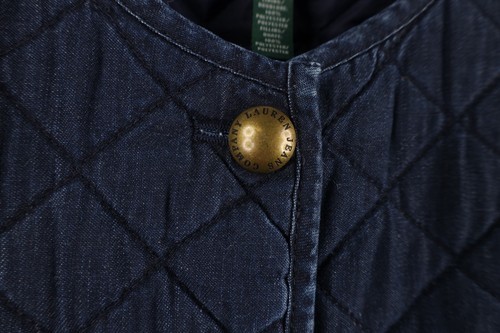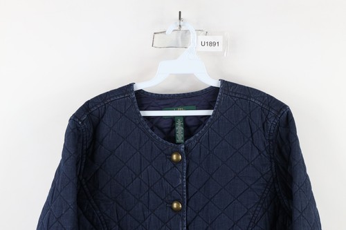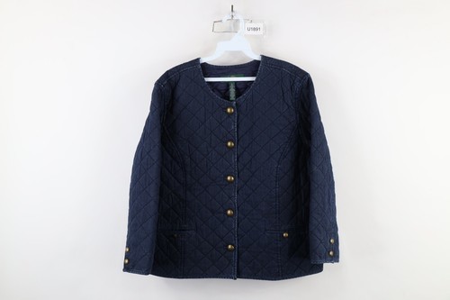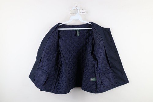 Vintage 90s Ralph Lauren Womens XL Faded Quilted Full Button Jacket Indigo Blue