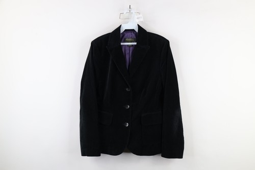 Vtg Eddie Bauer Womens 8 Velvet Velour 3 Button Blazer Jacket Suit Coat Black