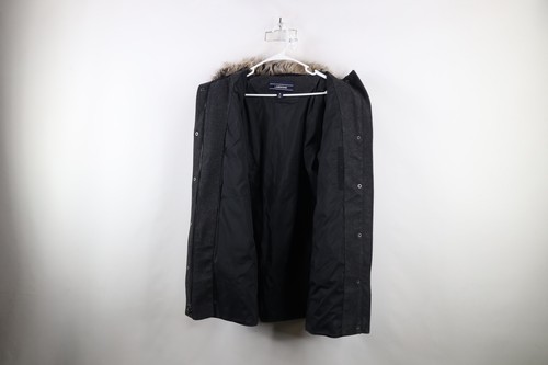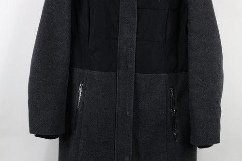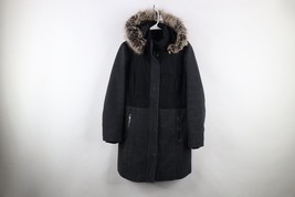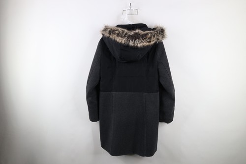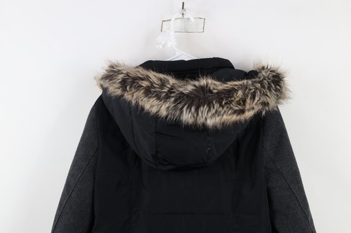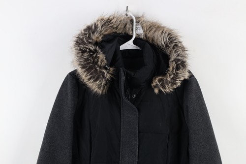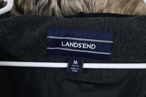 Lands End Womens Medium Distressed Wool Faux Fur Duck Down Hooded Jacket Coat