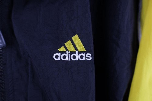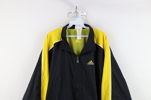 Vtg 90s Adidas Mens XL Spell Out Striped Color Block Lined Windbreaker Jacket