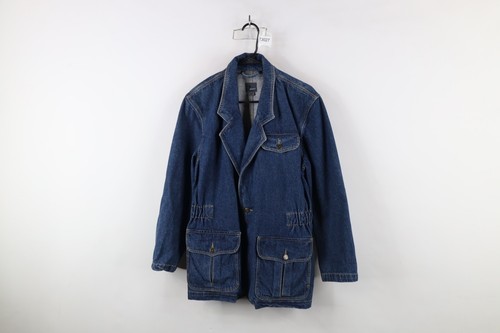 Vintage 90s Streetwear Womens Size 6 Faded Denim Jean Blazer Jacket Blue Cotton