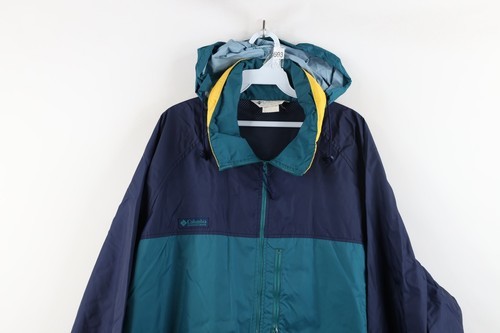Vintage 90s Columbia Mens XL Spell Out Color Block Hooded Windbreaker Jacket