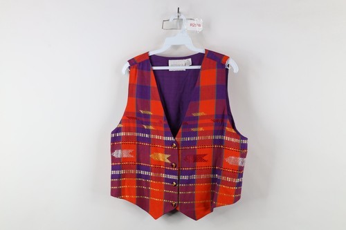 Vintage 90s Streetwear Womens Medium Rainbow India Madras Plaid Vest Jacket