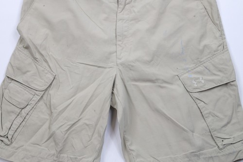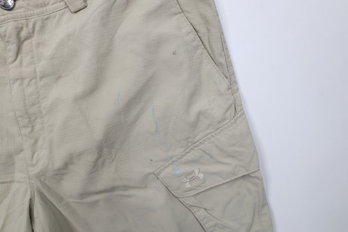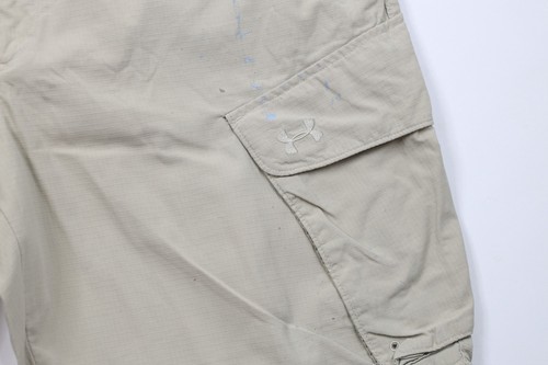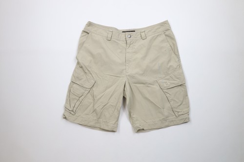 Vintage Under Armour Mens Size 34 Thrashed Ripstop Baggy Cargo Shorts Beige