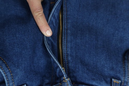 Stain left legs. Blemished/discoloring throughout. Thread bare fly, pockets, waist. Loose threads waist, fly. Distressed and faded. Cuffs discolored. Color faded. Made in USA