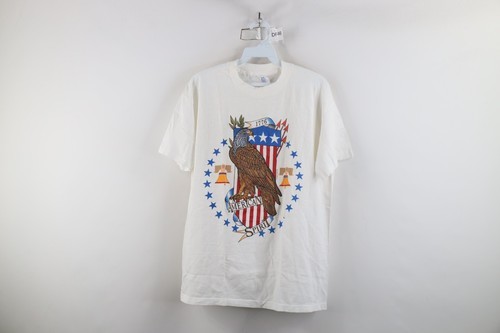 Vintage 90s Mens Large 1776 American Spirit Eagle July Fourth T-Shirt White USA