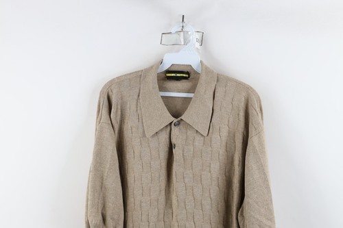 Vintage 70s Streetwear Mens 2XL XXL Checkered Weave Knit Collared Polo Shirt