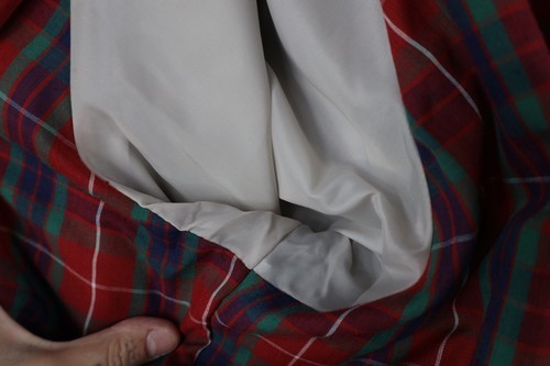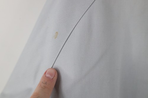 Stain back top left. Cuffs and collar yellowed. Color faded