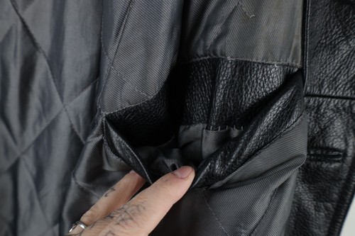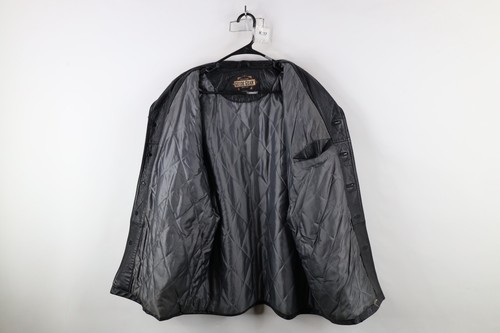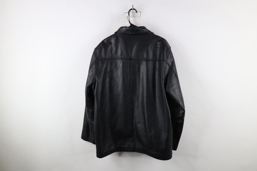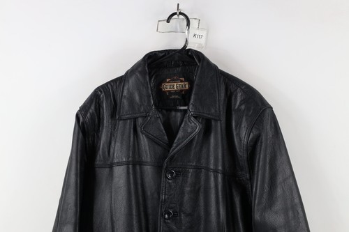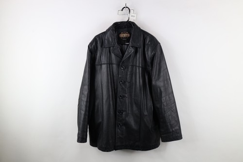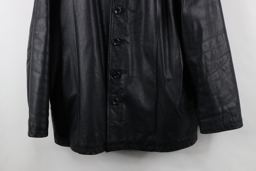 Vintage 90s Streetwear Mens Large Quilted Leather Full Button Jacket Coat Black