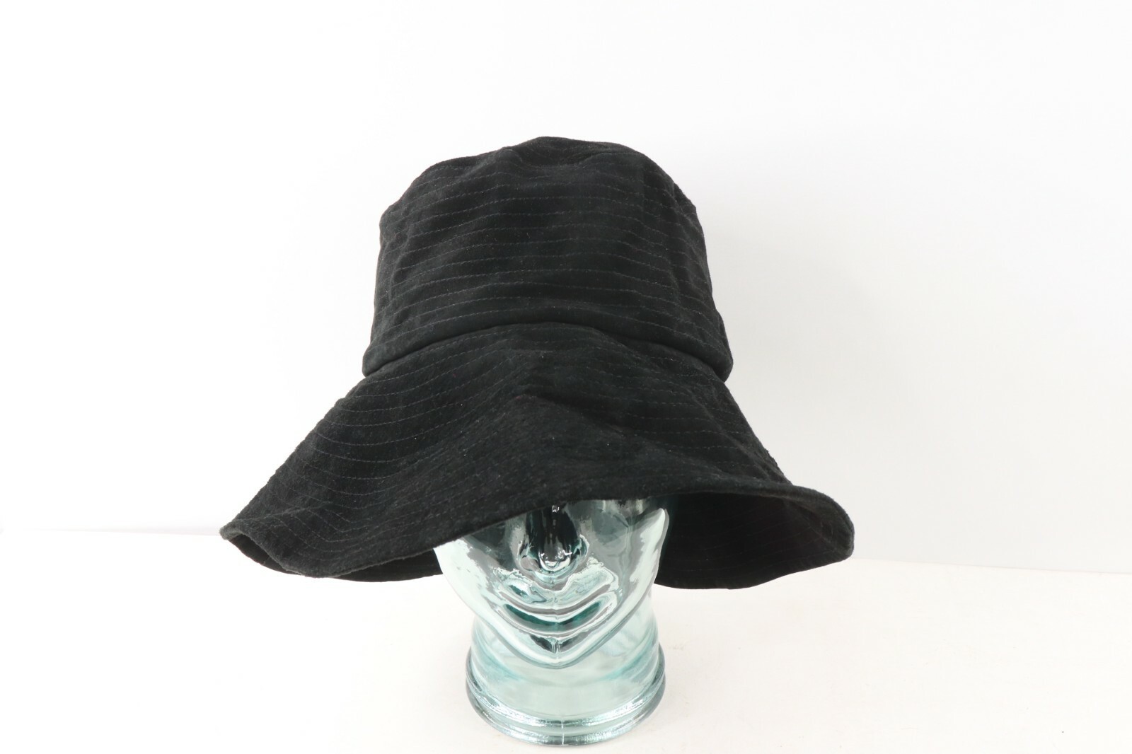 Vtg 90s Streetwear Suede Leather Floppy Brim Sun Hat Bucket Hat Black Womens M/L