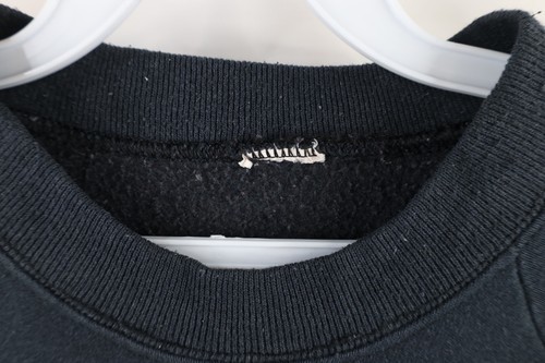Stains front top right, right arm. Graphics cracking. Color faded. Has pilling. USA made
