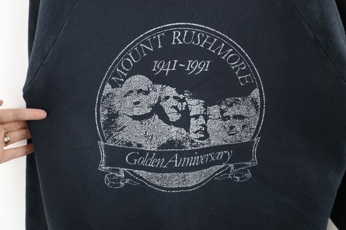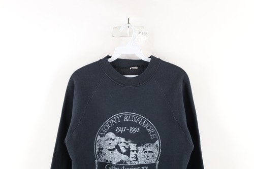 Vtg 90s Womens M Faded Spell Out Mount Rushmore 50th Anniversary Sweatshirt USA