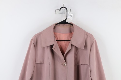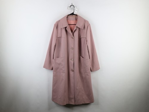 Vintage 70s Union Made Womens XL Distressed Button Trench Coat Jacket Pink USA