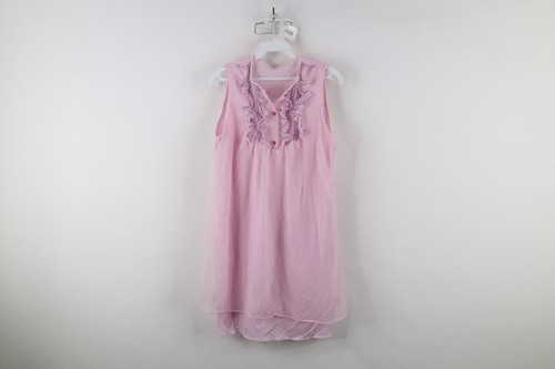 Vintage 60s 70s Fairy Princess Womens Medium Lace Ruffled Sleeveless Night Shirt