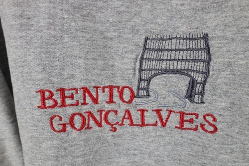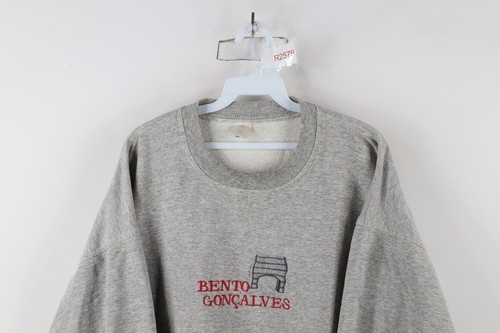 Vintage 90s Mens XL Distressed Spell Out Bento Goncalves Brazil Sweatshirt Gray