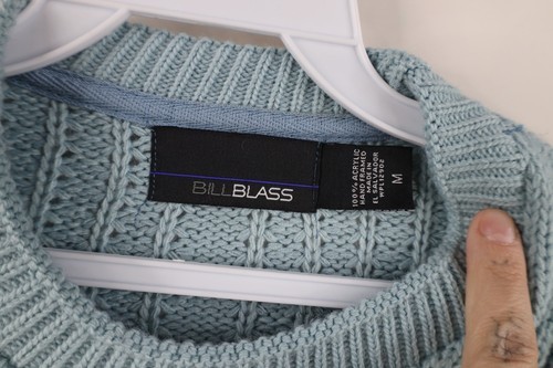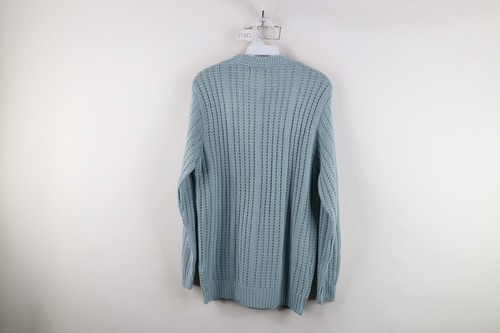 Vtg 90s Streetwear Mens M Blank Hand Framed Ribbed Knit Sweater Carolina Blue