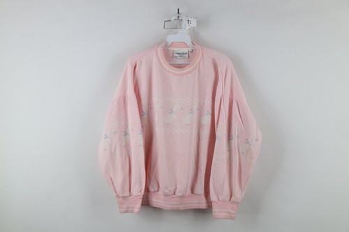 Vtg 90s Streetwear Womens 40 Distressed Fairy Kei Kawaii Duck Heart Sweatshirt