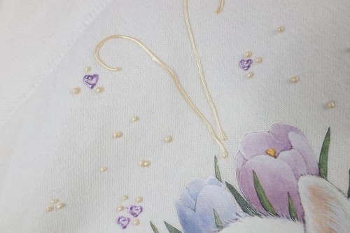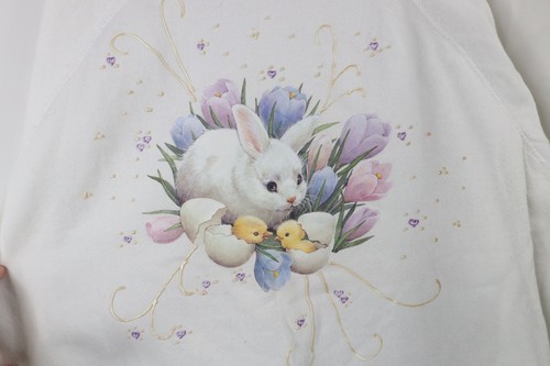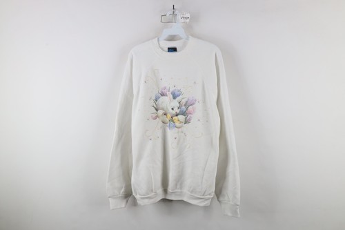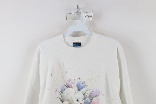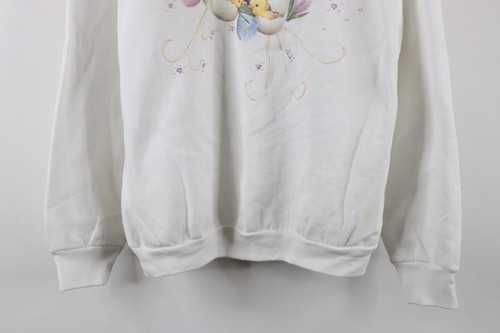 Vintage 90s Streetwear Womens XL Easter Bunny Flower Puff Paint Sweatshirt USA