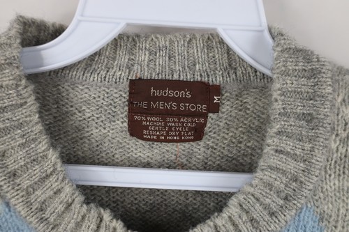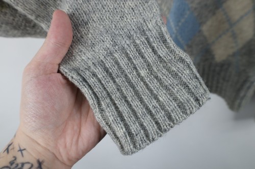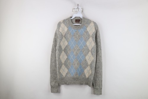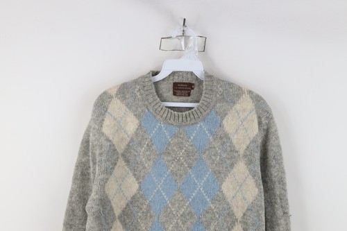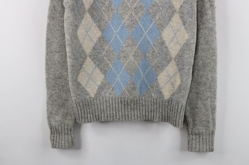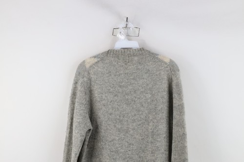 Vtg 70s Streetwear Mens Medium Wool Blend Argyle Diamond Knit Crewneck Sweater