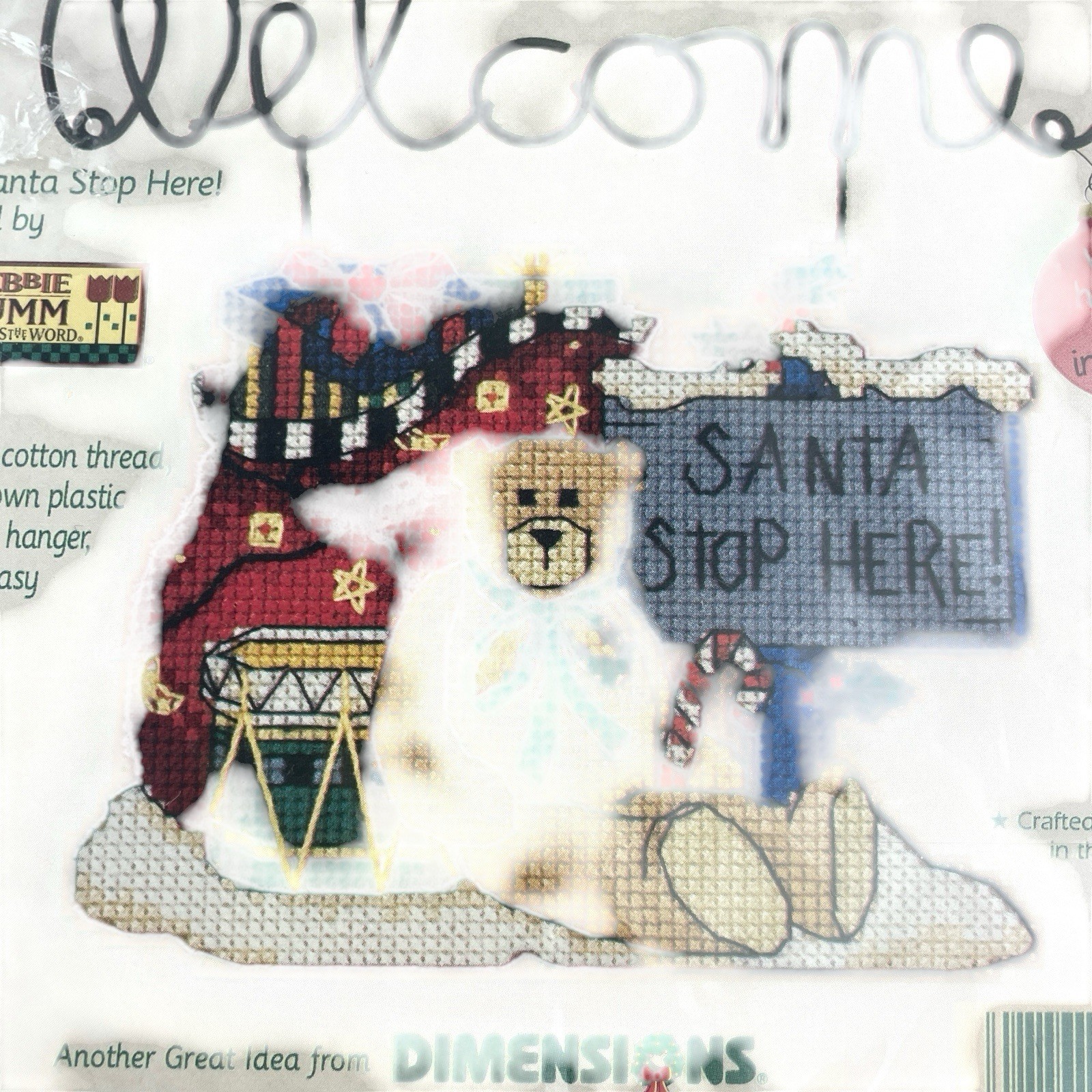 Dimensions Wire Welcome Santa Stop Here 6" Counted Cross Stitch Kit 8632