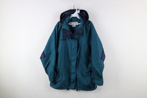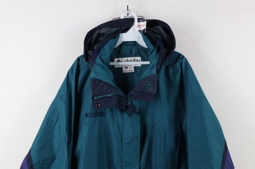Vintage 90s Columbia Womens Large Distressed Color Block Hooded Parka Jacket