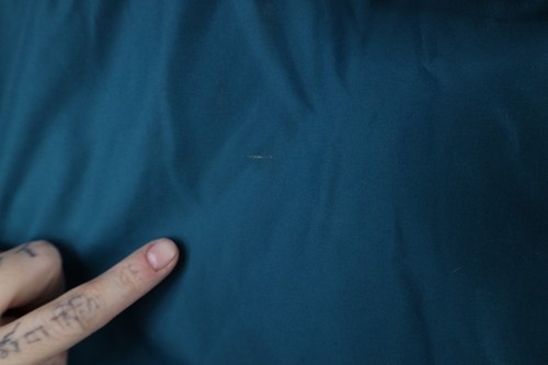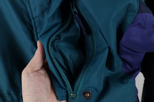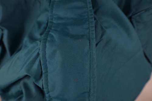 Stains throughout. Cuffs and collar discolored. Color faded. Hood can zip into the collar