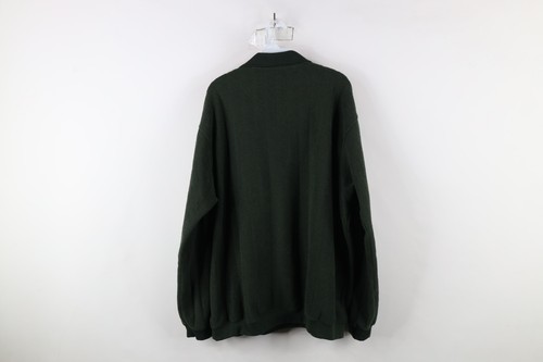 Vtg 90s Streetwear Mens 2XL Faded Fleece Striped Collared Pullover Sweater Green