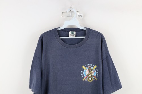 Vtg 90s Mens XL Striped Detroit Firefighters Baseball Short Sleeve T-Shirt USA