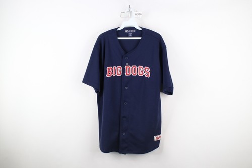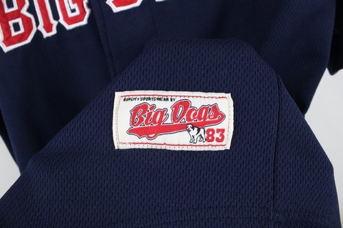 Vintage 90s Big Dogs Mens Large Spell Out Short Sleeve Baseball Jersey Blue USA