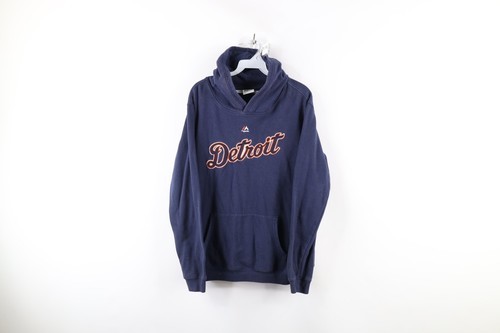 Vtg Majestic Womens Large Faded Spell Out Detroit Tigers Baseball Hoodie Blue