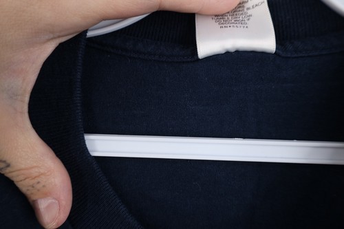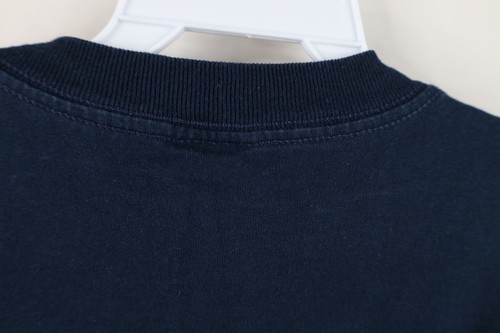Blemishes shoulders, collar/inner collar, back top. Collar discolored. Graphics, color faded. Pilling. Made in USA