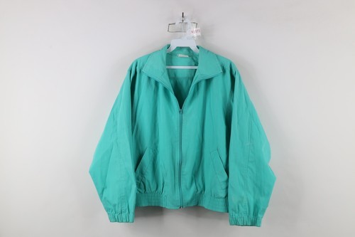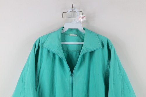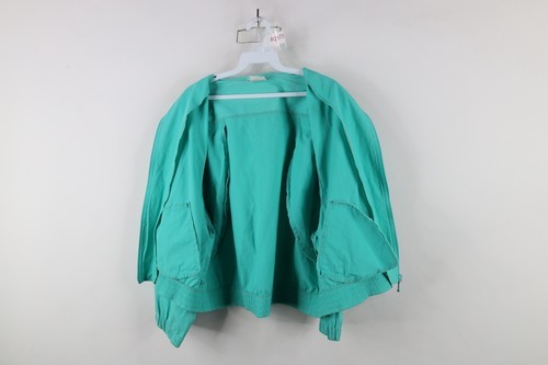 Vintage 90s Streetwear Womens XL Distressed Blank Full Zip Bomber Jacket Teal