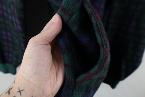 Cuffs discolored. Loose threads inner collar. Fleece matted, pilled. Color faded. Baggy oversized fit