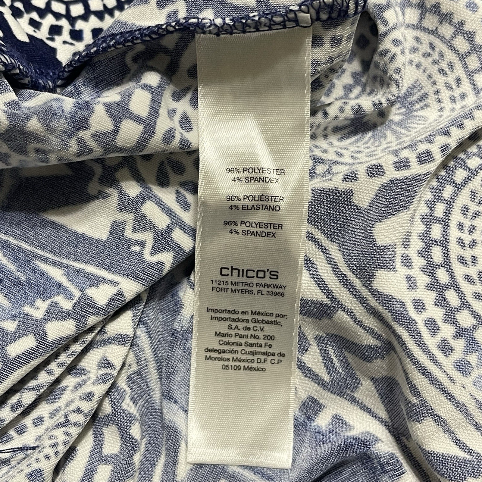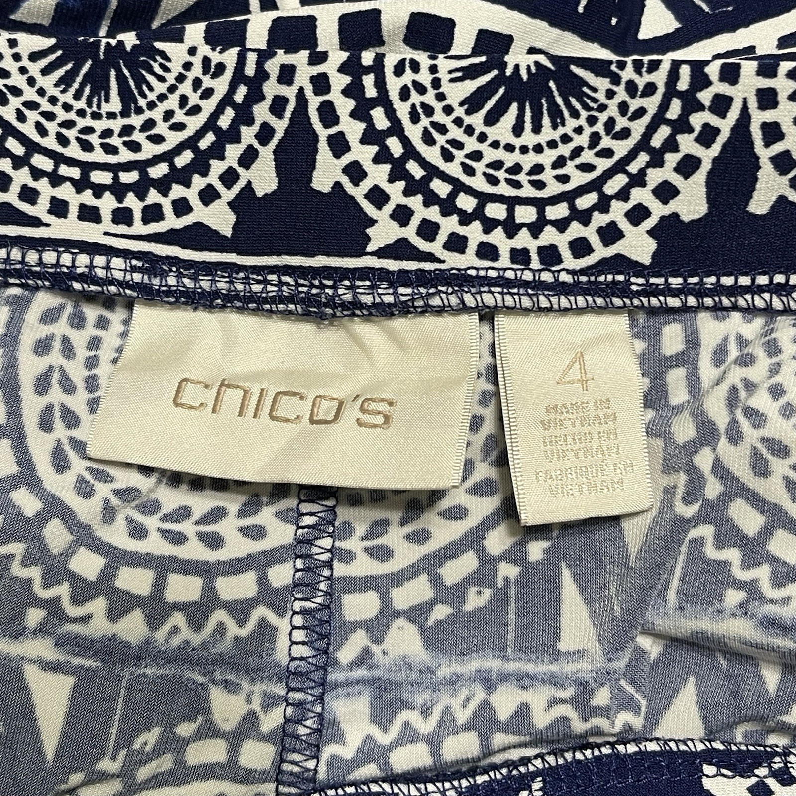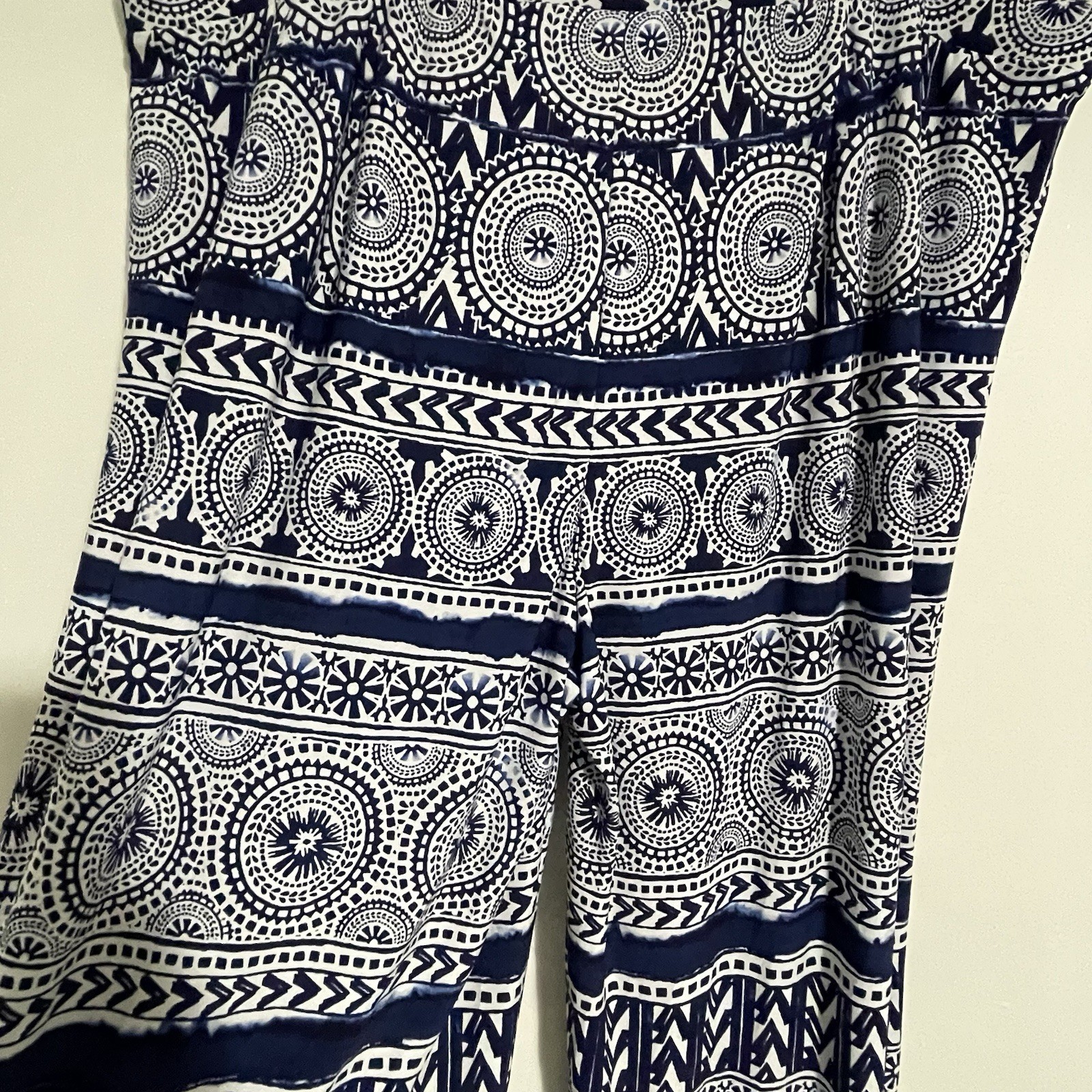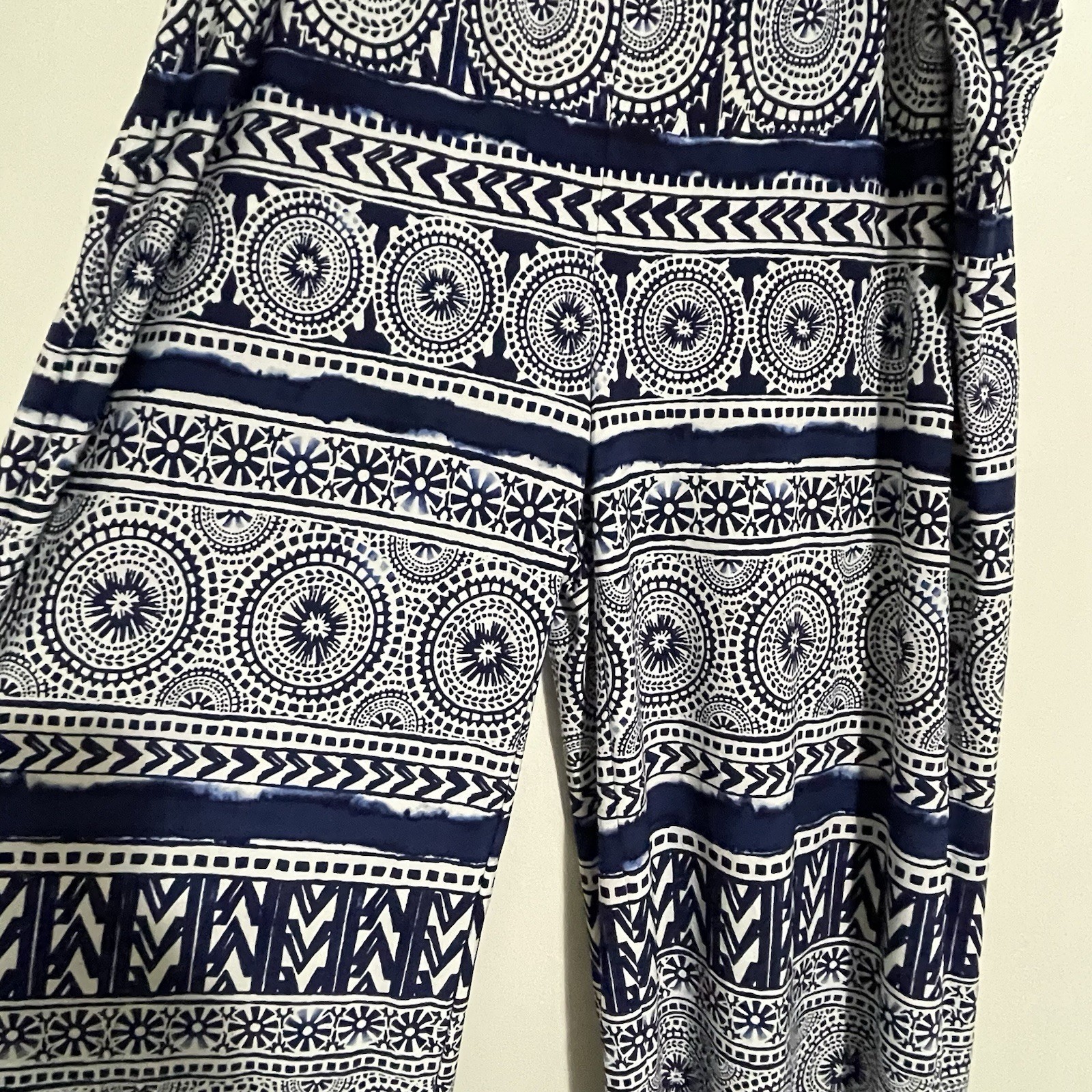 Chicos Palazzo Pants Plus Size 4 XXL Navy White Ikat Mandala Boho Resort Flowy