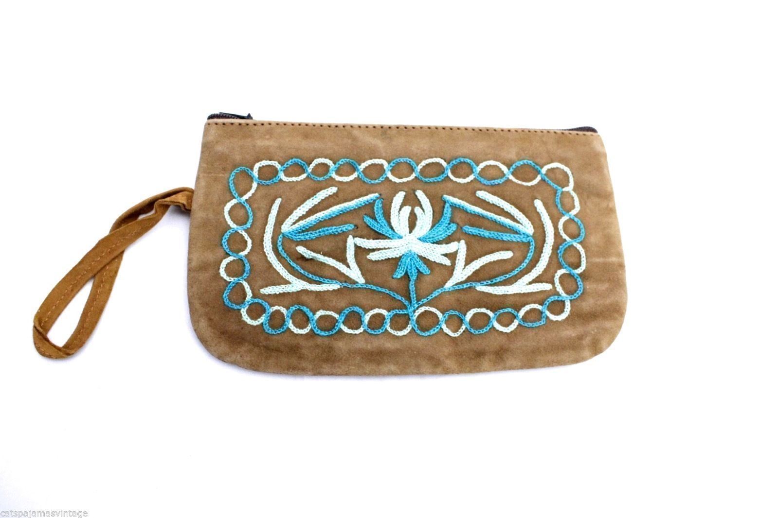 Vintage Suede Change Purse Embroidered Brown and 45 similar items