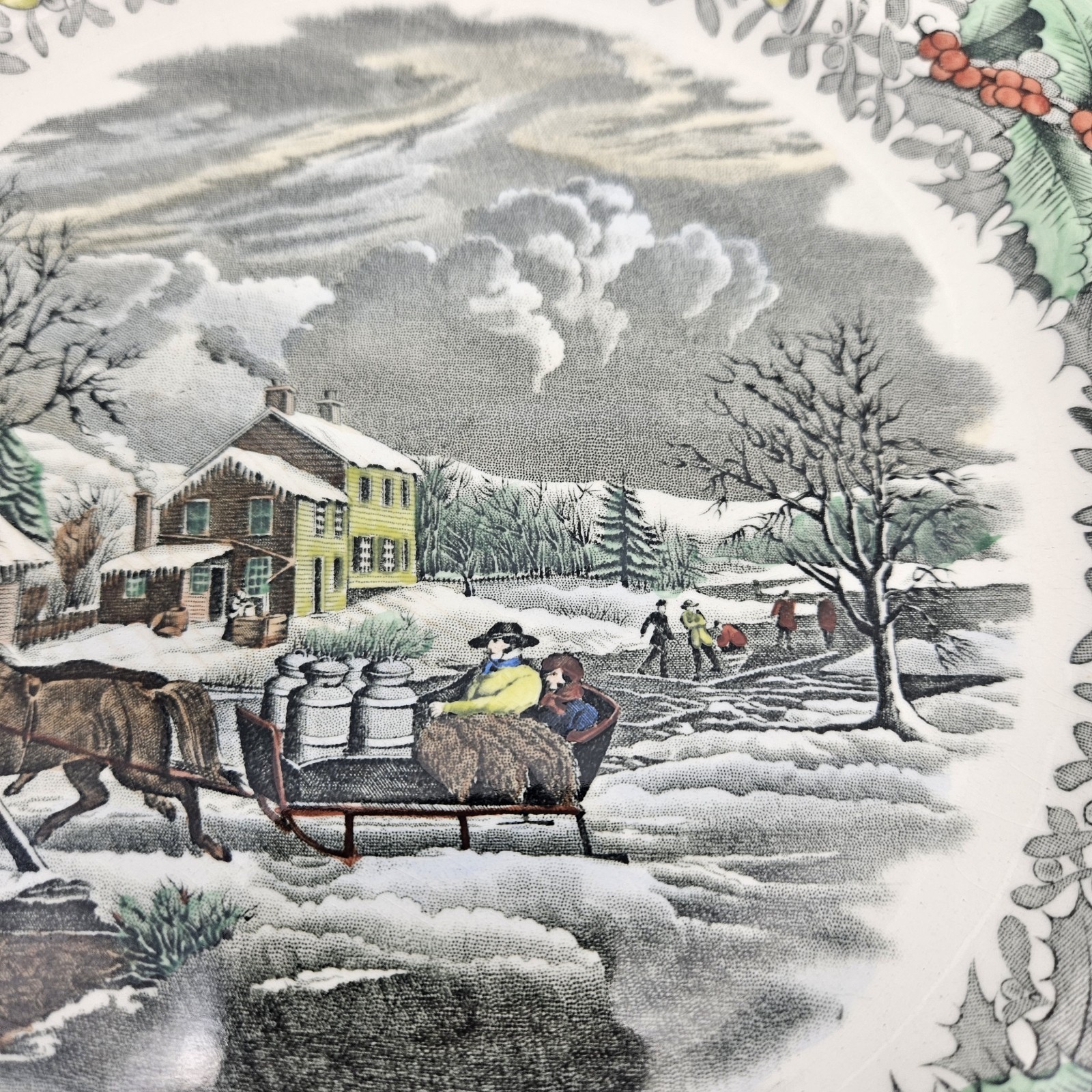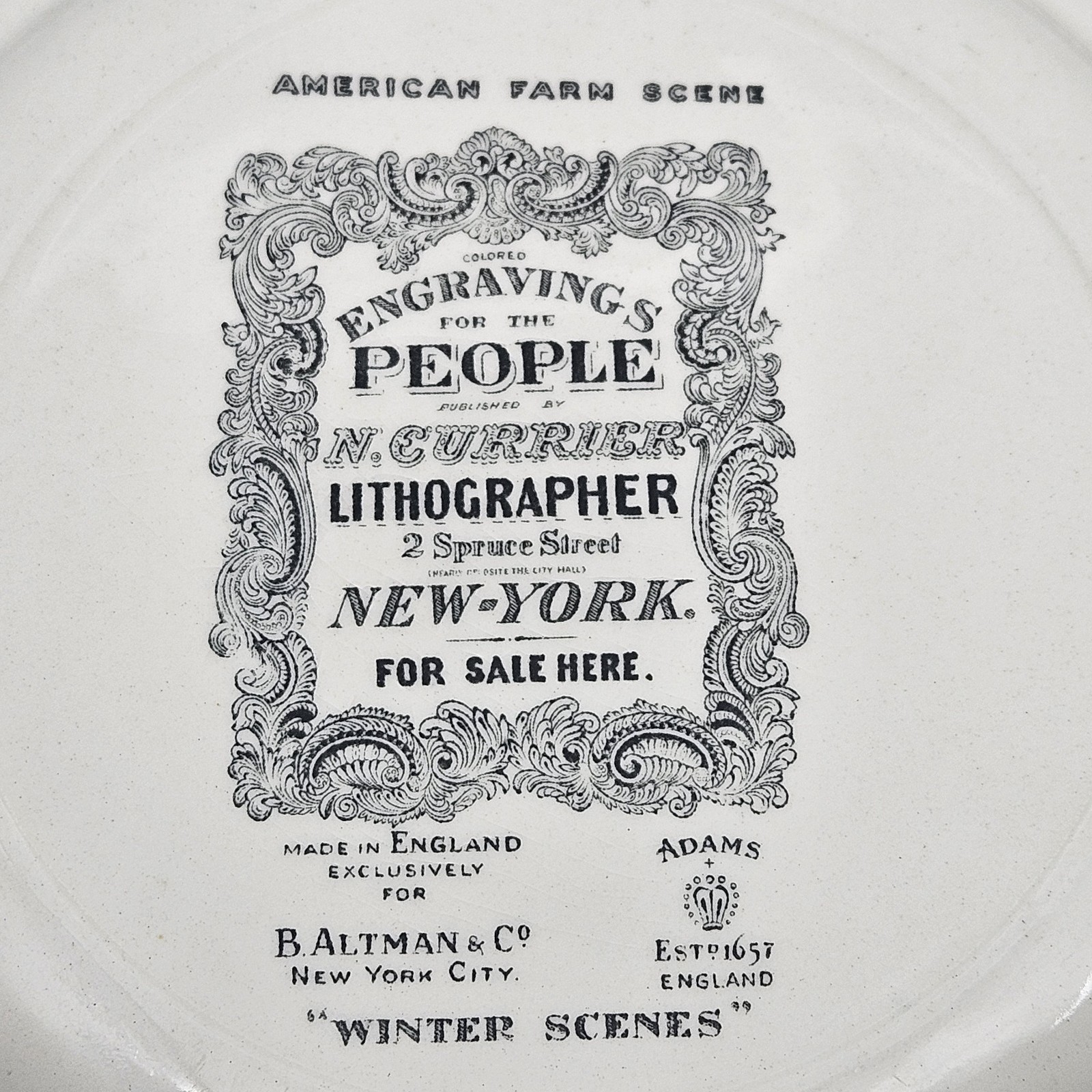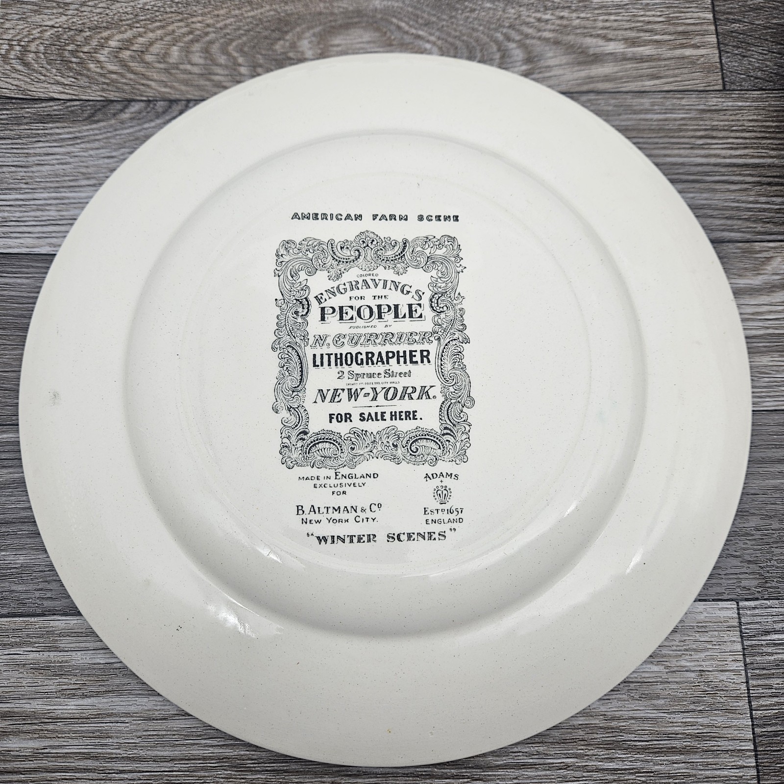Vintage Adams Currier & Ives Christmas Plate American Farm Scene Winter Scenes