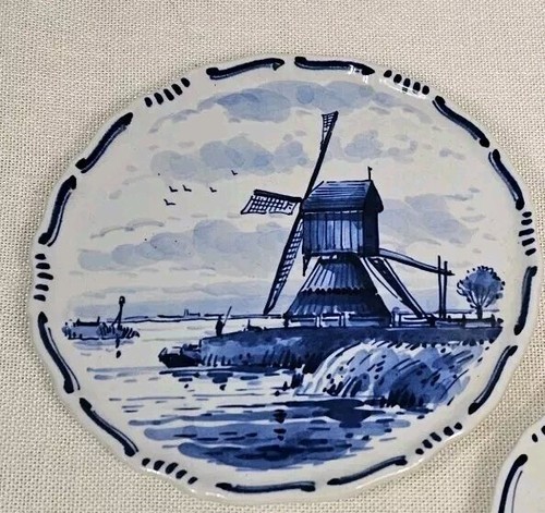 Royal Delft Porcelain Blue White Windmill Scene Antique 5 7/8" Wall plate