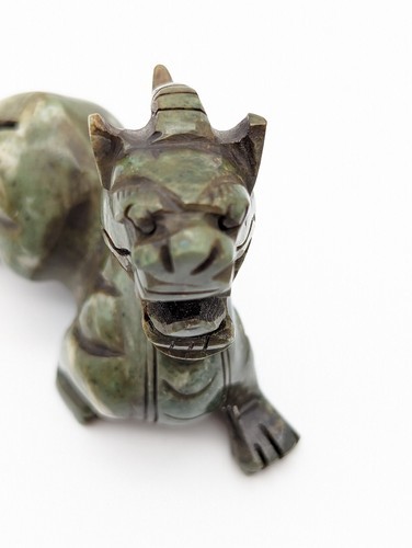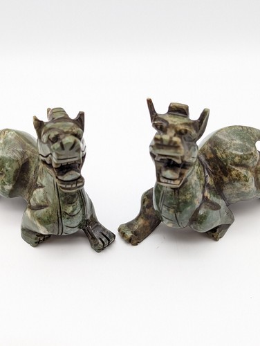 Set of 2 Jade Prosperity Dragon Foo Dog Heavy Beautiful Carved Good Fortune