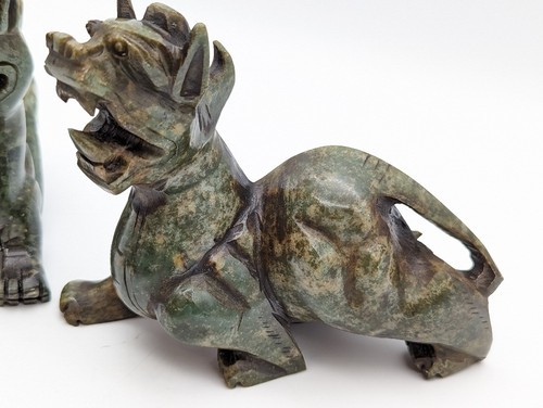 Vtg Set of 2 Jade Green Carved Foo Dogs and 48 similar items